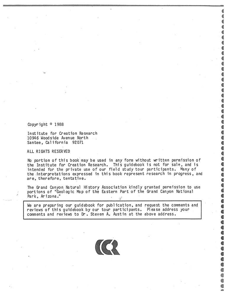 Austin’s 1989 Grand Canyon Guidebook that Austin “accidently” inserted a 1988 copyright Title Page into, after first claiming to Dr. Walt Brown that this “1988” publication proved that he (Austin) had priority in the discovery of Grand Lake.