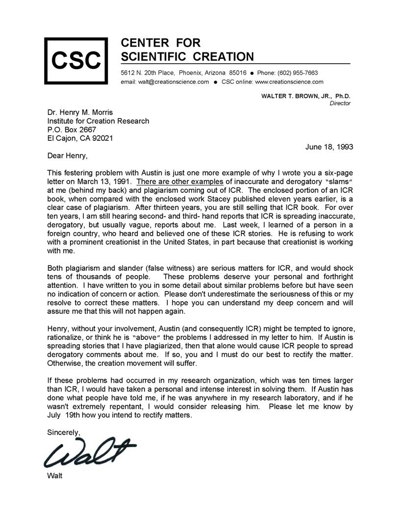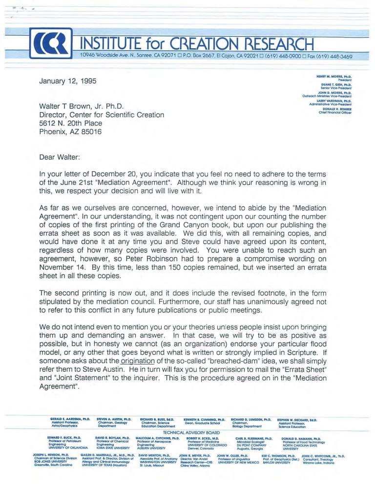 June 22, 1993 Letter from Henry Morris II, to Walt Brown in response to Brown’s Letter of June 18, 1993 June 22, 1993 Letter from Henry Morris II, to Walt Brown in response to Brown’s Letter of June 18, 1993 Read more about June 22, 1993 Letter from Henry Morris II, to Walt Brown in response to Brown’s Letter of June 18, 199316 reads